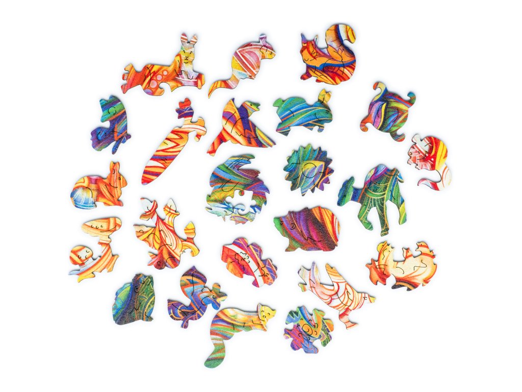 Každý díl naších dřevěných puzzlí má přesné fantastické tvary, od různých druhů kouzelných